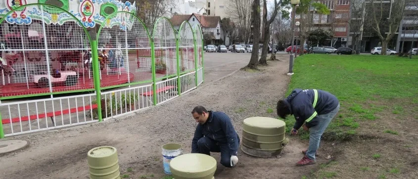 El Ente de Servicios Urbanos, a través de personal del Departamento de Espacios Verdes y el de Arbolado Público, del Departamento Técnico, Departamento de Servicios Generales y la Dirección de Espacios Públicos e Infraestructura, se organizó en dos frentes. Por un lado, se trabajó en el mantenimiento y reacondicionamiento del sector de juegos y relleno de areneros; limpieza y pintura de mobiliario urbano entre bancos y cestos papeleros; reparación de barreras de acceso; y remodelación de veredas y mosaicos para facilitar la transitabilidad en el espacio público.