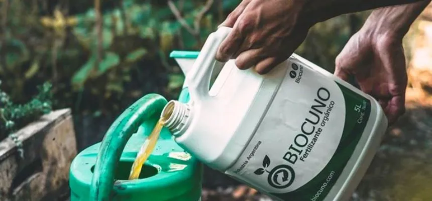 El producto que se identifica conla marca "Biocuno", una alternativa a los fertilizantes industriales de síntesis química, que es elaborado a partir de la fermentación de melaza, suero y materia fecal vacuna, en un medio líquido que también contiene ceniza y harina de roca.